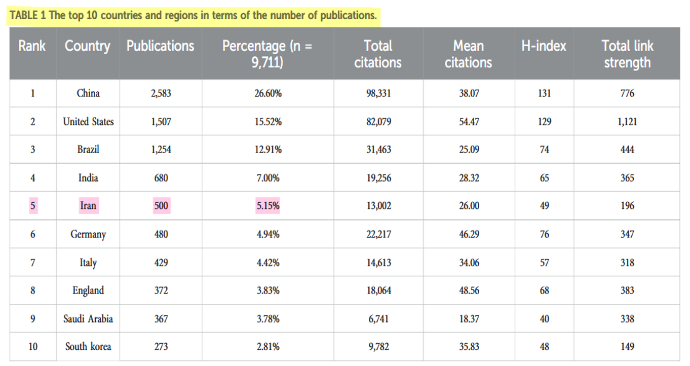 در میان 126 کشور فعال در این زمینه، ایران موفق به کسب رتبه پنجم جهانی شده است؛ جایگاهی درخور تحسین که نشان‌دهنده پیشرفت علمی و توان پژوهشی پژوهشگران ایرانی است.